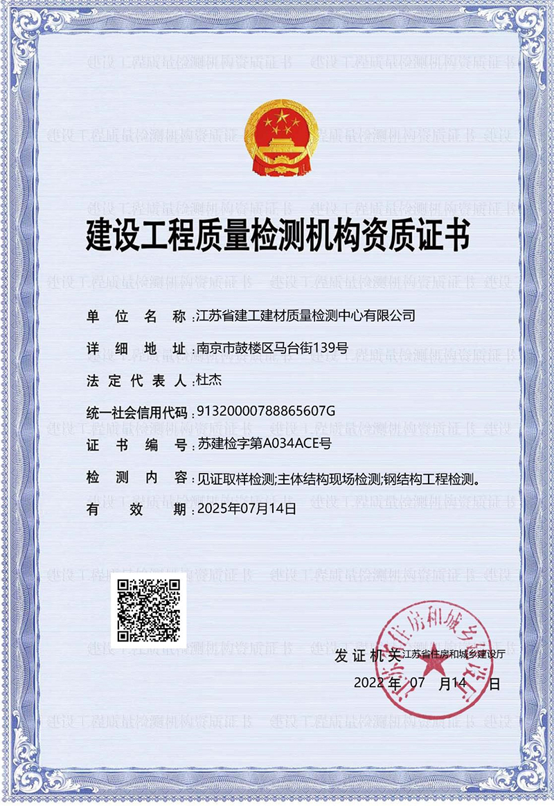建設工程質(zhì)量檢測機構(gòu)資質(zhì)證書