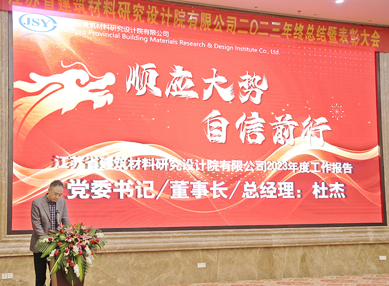 2024年1月24日下午,院公司2023年終總結(jié)暨表彰大會(huì)在華江飯店華江廳召開(kāi)。江蘇中江國(guó)際投資有限公司董事長(zhǎng)、總經(jīng)理、院公司董事楊軍,中江國(guó)際集團(tuán)黨委組織部(人力資源部)副部長(zhǎng)、人力資源公司總經(jīng)理、院公司董事田忠秀,南京大學(xué)法學(xué)院黨委副書(shū)記、院公司獨(dú)立董事馬駿,國(guó)家市場(chǎng)監(jiān)管總局、住房和城鄉(xiāng)建設(shè)部、工業(yè)和信息化部夏熱冬冷地區(qū)綠色建材產(chǎn)品認(rèn)證技術(shù)委員會(huì)秘書(shū)長(zhǎng)李安良,中江國(guó)際集團(tuán)審計(jì)部部長(zhǎng)助理、院公司監(jiān)事侯超,院公司黨委書(shū)記、董事長(zhǎng)、總經(jīng)理杜杰,院公司副總經(jīng)理葉明武、張國(guó)華,院公司總經(jīng)理助理郁超,院公司財(cái)務(wù)負(fù)責(zé)人陳立俠等領(lǐng)導(dǎo)、嘉賓及全體員工160余名出席大會(huì)。