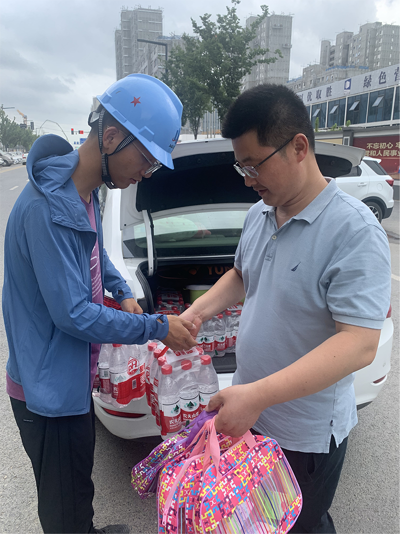 公司慰問團(tuán)隊分成若干小組,分別前往各在建項目工地。每到一項目,慰問組都將精心準(zhǔn)備的消暑降溫禮包送到員工手中,禮包內(nèi)包含了礦泉水、防暑物品等實用物品,以滿足員工在高溫天氣下的實際需求。