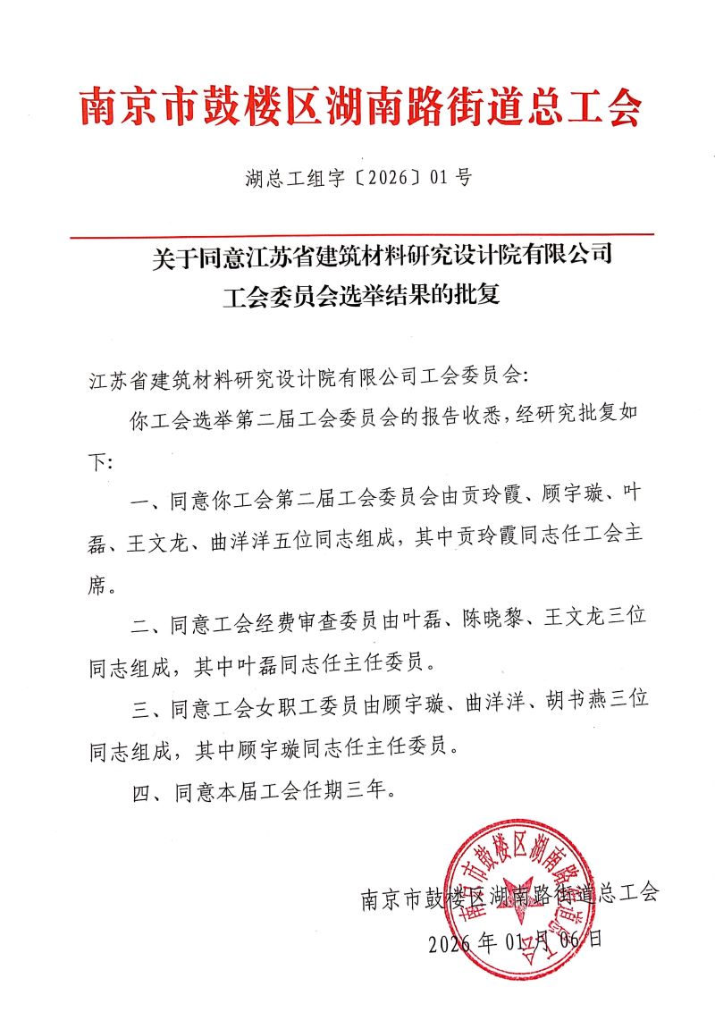 本次大會(huì)在全體與會(huì)人員的共同努力下,圓滿完成了各項(xiàng)議程,取得了豐碩成果。工會(huì)換屆選舉的順利完成,標(biāo)志著江蘇省建筑材料研究設(shè)計(jì)院有限公司工會(huì)建設(shè)工作開(kāi)啟了嶄新篇章,為未來(lái)工會(huì)工作高效開(kāi)展奠定了堅(jiān)實(shí)的組織基礎(chǔ)。